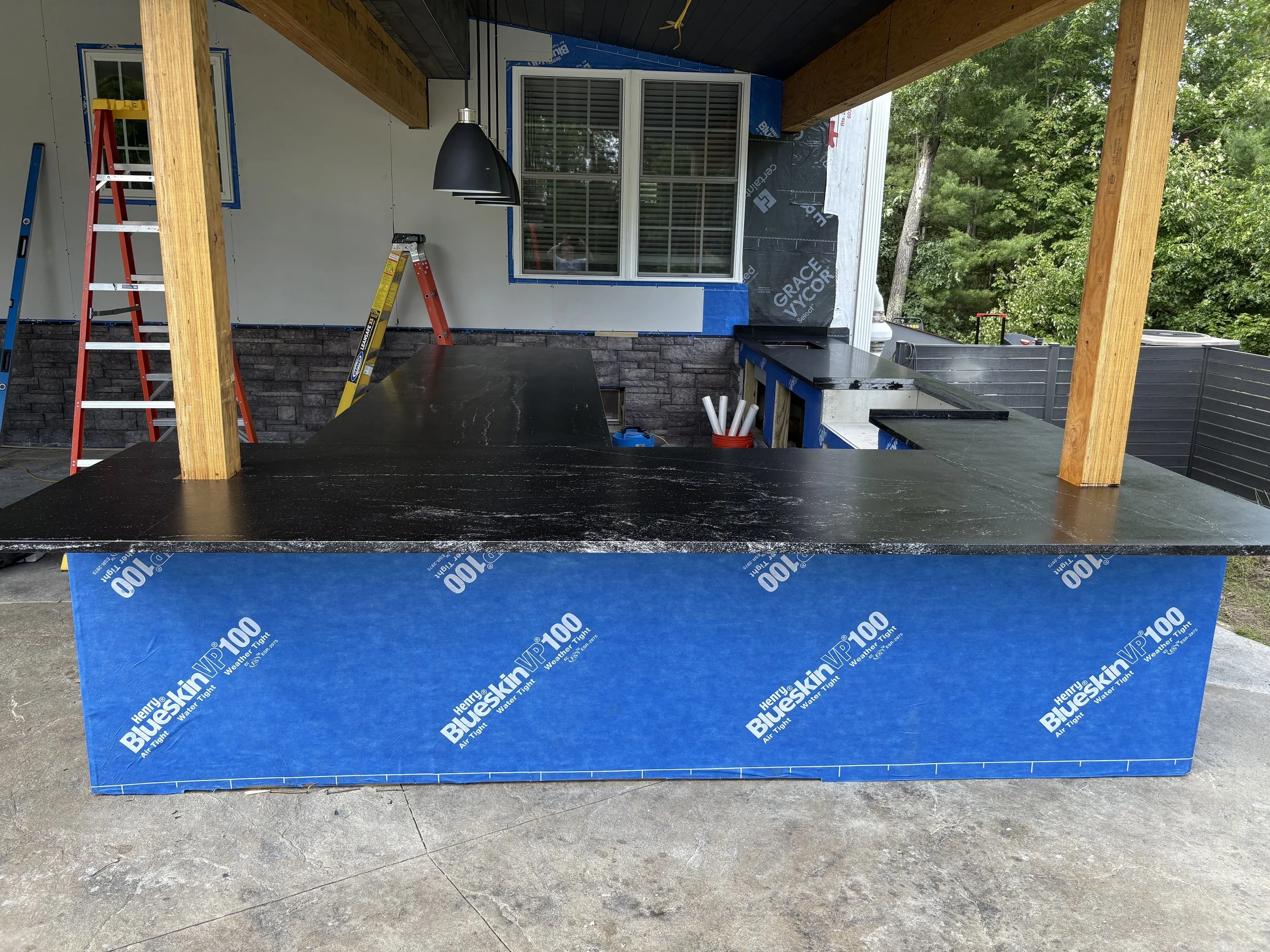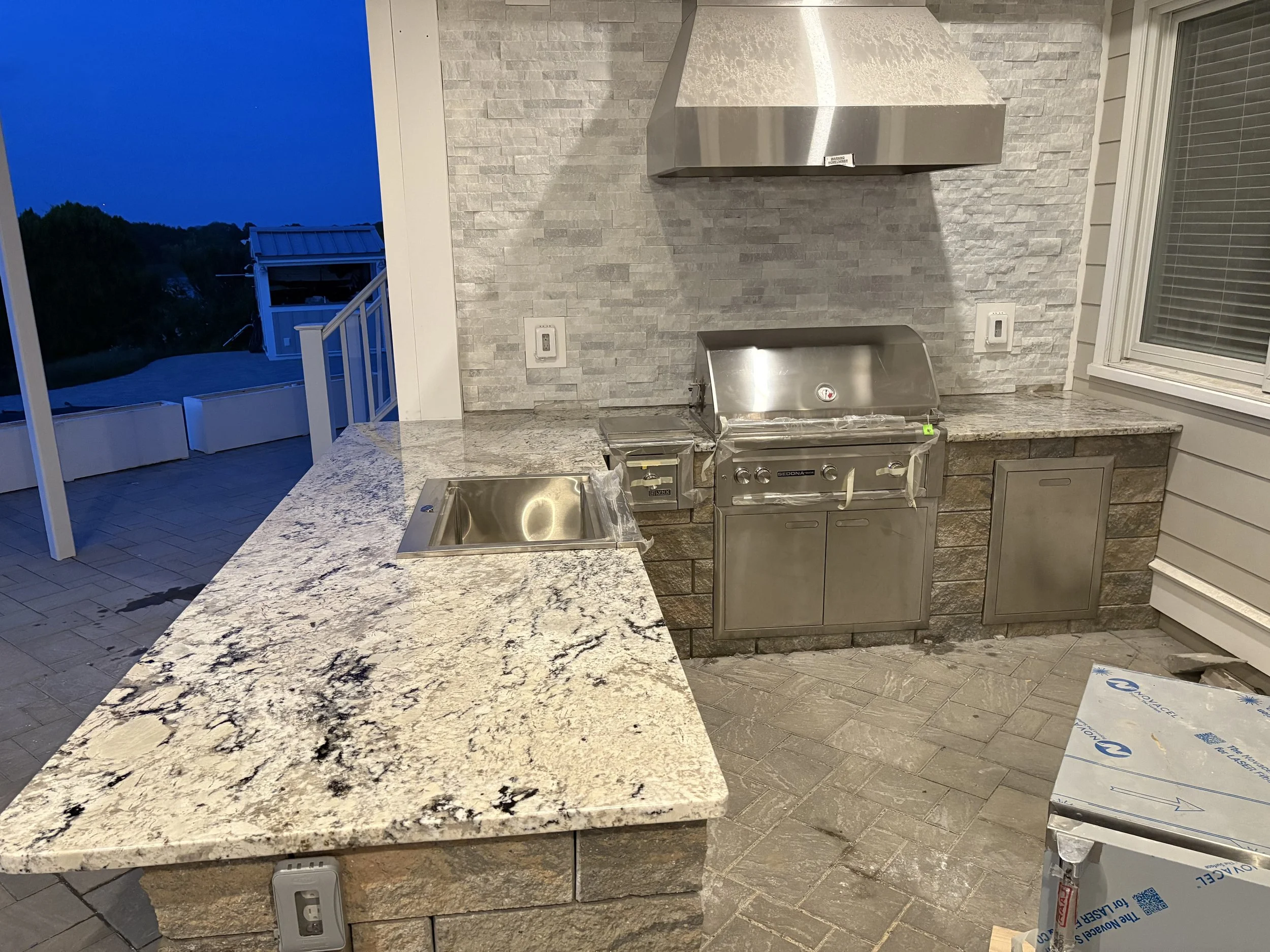 Material: Granite, Marble, Quartzite, and Soapstone. However Quartz is NOT recommended for outdoor surfaces.